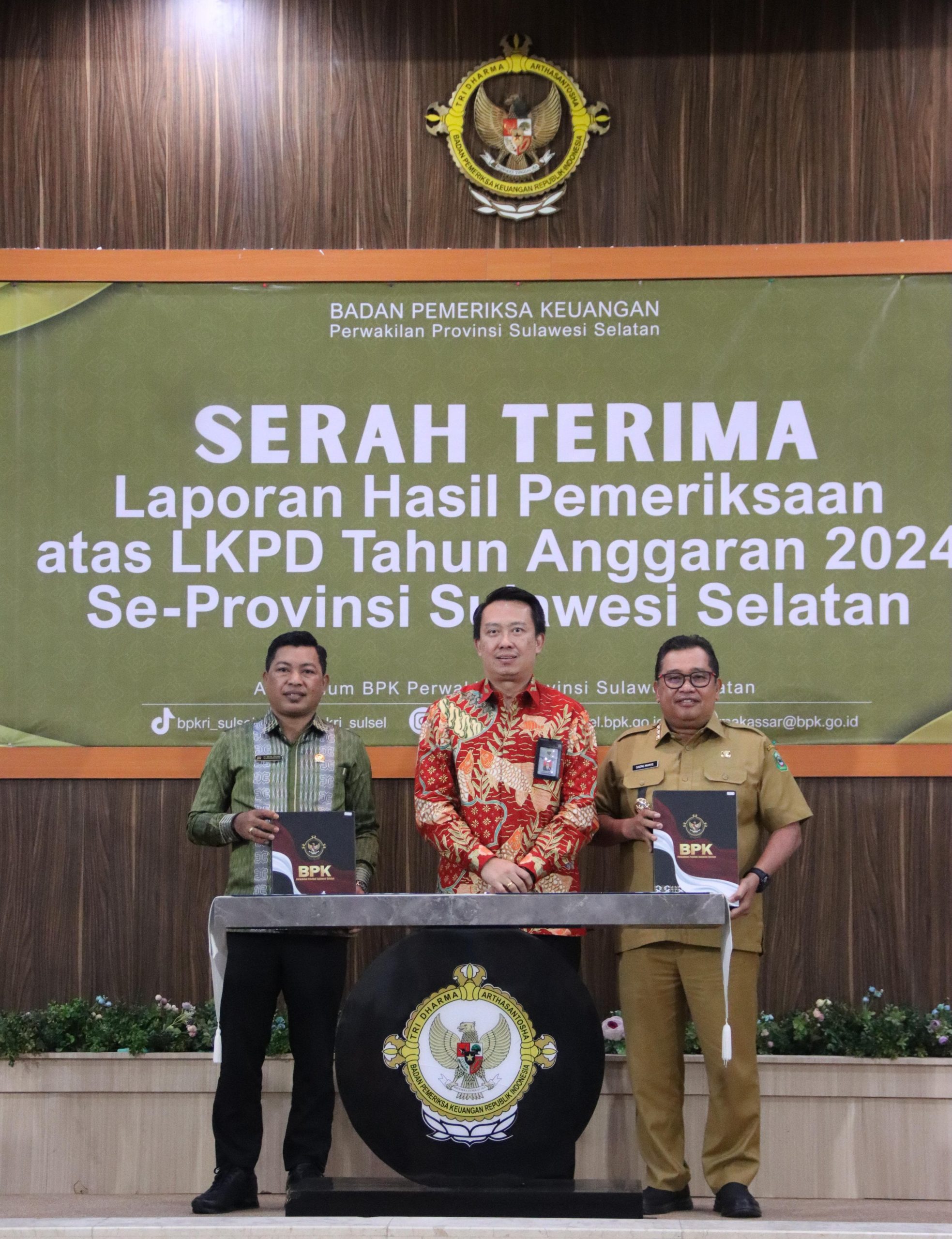 Penyerahan laporan hasil pemeriksaan atas Laporan Keuangan Pemerintah Daerah (LKPD) se-Sulawesi Selatan itu, berlangsung di Auditorium BPK RI Perwakilan Sulsel, Jalan AP Pettarani, pasa Selasa 27 Mei 2025.