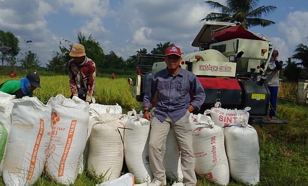 Lasno, petani padi asal Desa Sumbersari, Kecamatan Sekampung, mengaku bersyukur dengan hasil panen yang ia dapatkan.