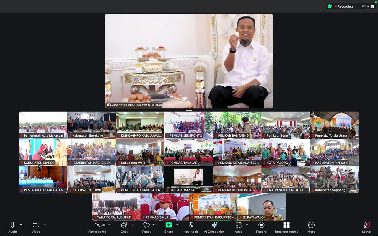 Peluncuran Gerakan Gemar Makan Telur (GGMT) secara serentak di seluruh daerah, Selasa (14/10/2025), dilakukan via zoom dalam rangkaian Hari Jadi ke-356 Sulsel ini diikuti oleh perwakilan dari 24 kabupaten dan kota.
