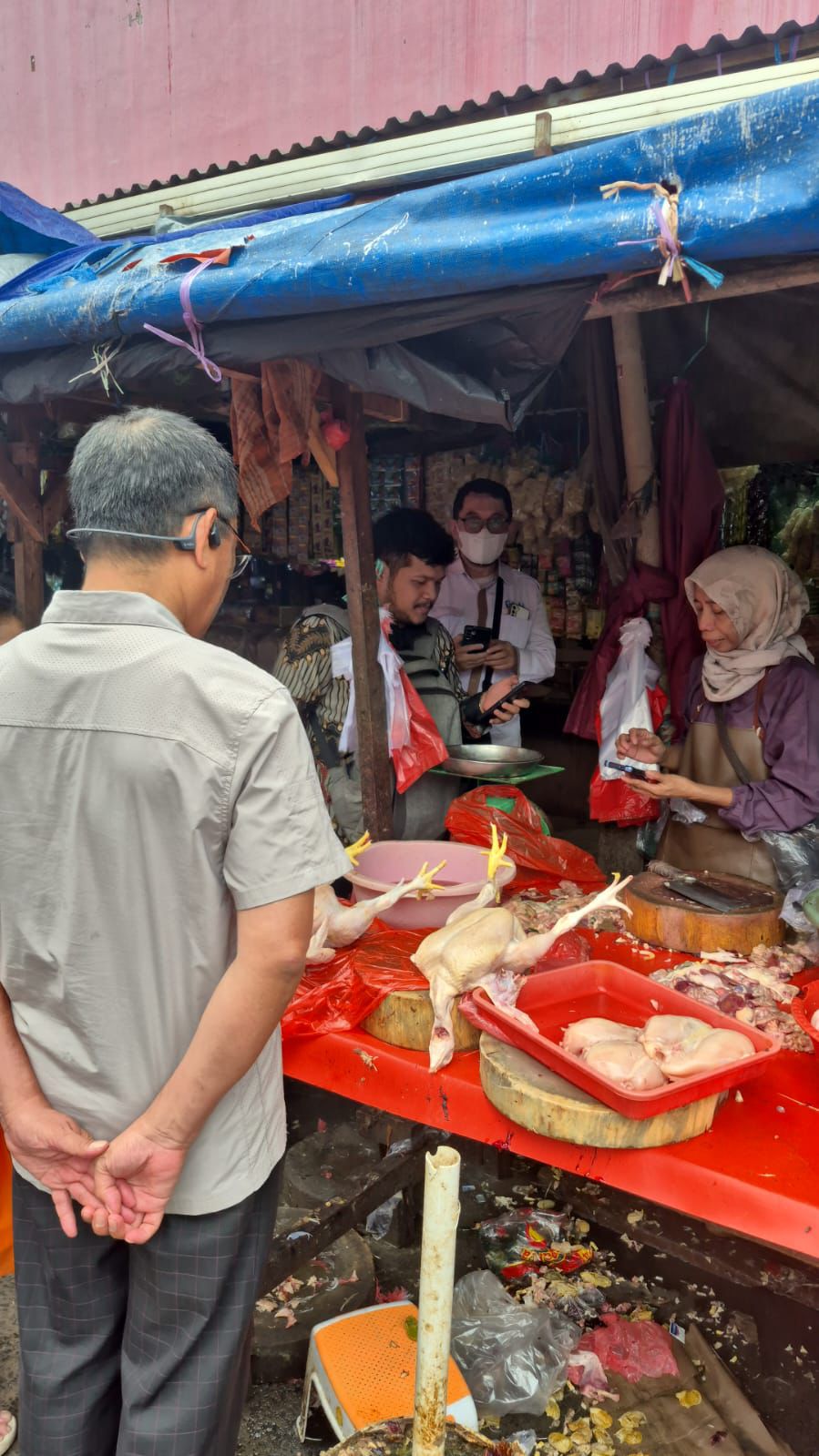 Direktur Hilirisasi Hasil Peternakan Kementerian Pertanian, Makmun, turun langsung berdialog dengan para pedagang untuk mengklarifikasi laporan harga ayam yang disebut mencapai Rp60 ribu. Dalam sidak tersebut, ia tidak hanya mengecek harga jual, tetapi juga menimbang berat ayam yang diperdagangkan guna memastikan harga riil per kilogram.